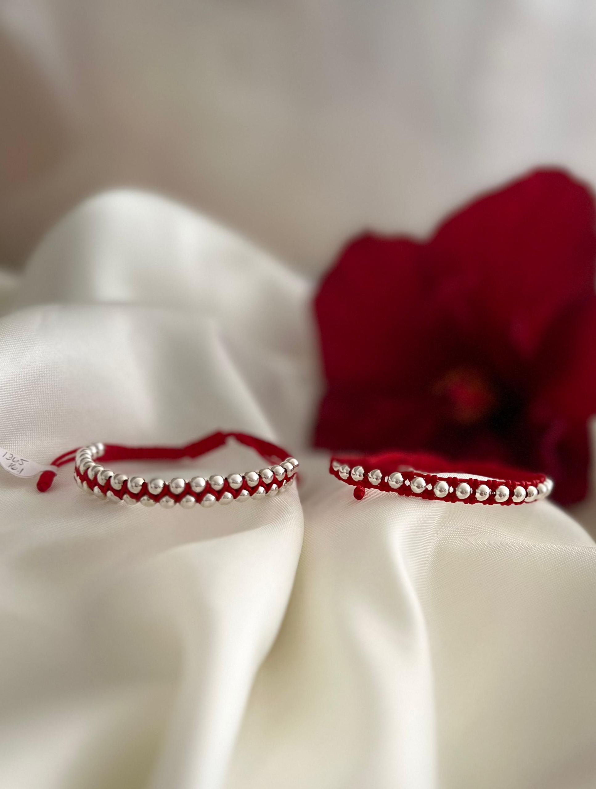 Elaborada totalmente a mano con materiales de excelente calidad. Hilo coreano color rojo y cuentas de plata 925.